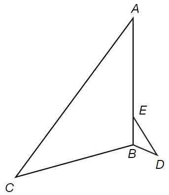 Triangles ABC and BED have two pairs of congruent angles. Therefore, the third pair of angles must be congruent, which makes these triangles similar. If the area of the smaller triangle, BED, is equal to , then the area of the larger triangle, ABC, is equal to or25 . The area of