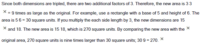 How does the area of a rectangle change if both the base and the height of the original rectangle are tripled?