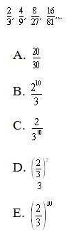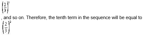 Each term in the pattern is equal to the fraction2/3raised to an exponent that is equal to the position of the term in the sequence. The first term in the sequence is equal to , the second term is equal to