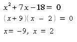 An equation is undefined when the value of a denominator in the equation is equal to zero. Set x2 7x +18 equal to zero and factor the quadratic to find its roots: