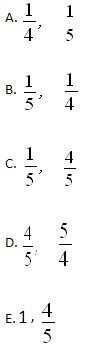 Two numbers are in the ratio 4:5 if the second number is5/4times the value of the first number;1/4is5/4times the value of1/5.
