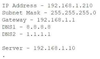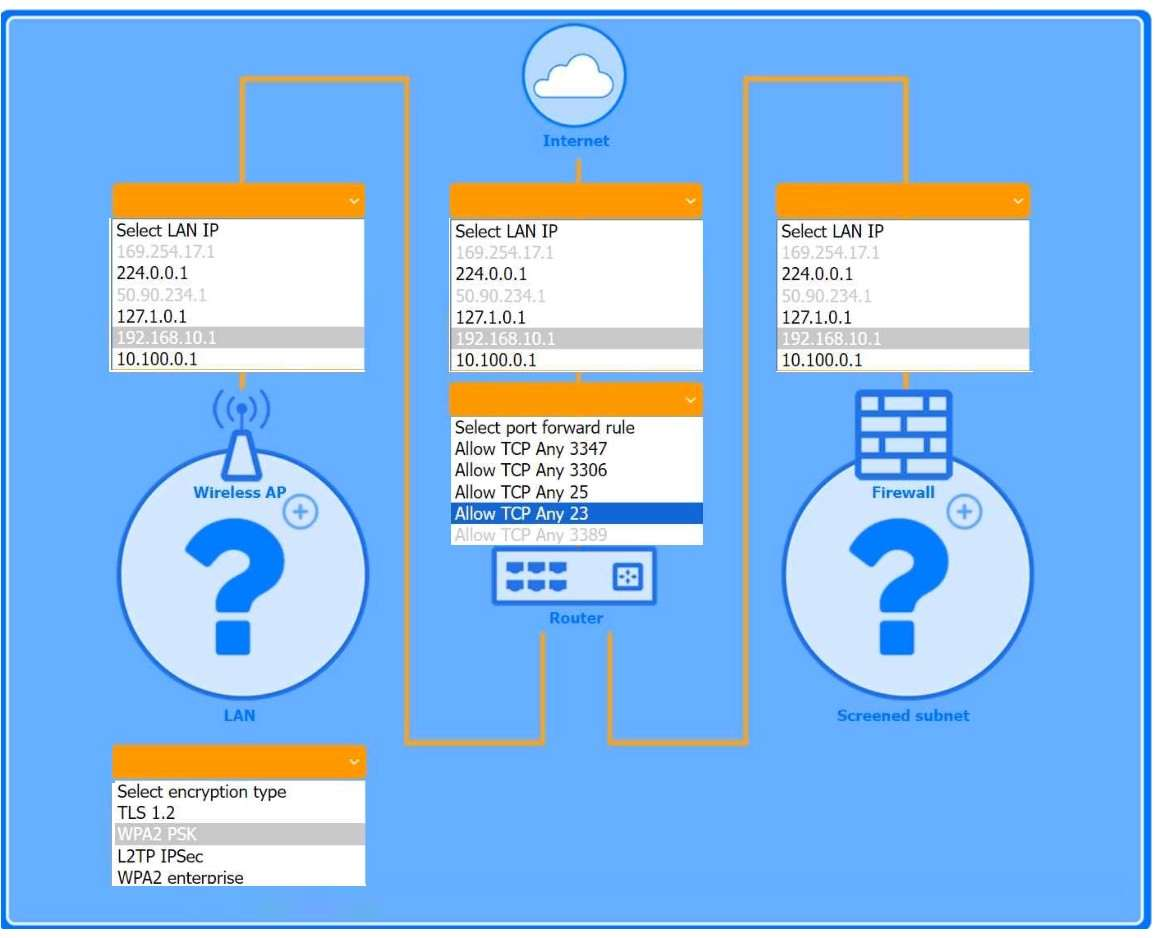 Use the drop-down menus to complete the network configuration for the customer. Each option may only be used once, and not all options will be used.
