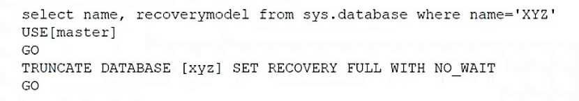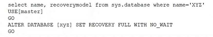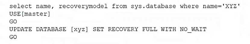 The script that would set the database recovery model for sys.database is option A. This script uses the ALTER DATABASE statement to modify the recovery model of the sys.database to full with no wait. The other options either have syntax errors, use incorrect keywords, or do not specify the recovery model correctly.