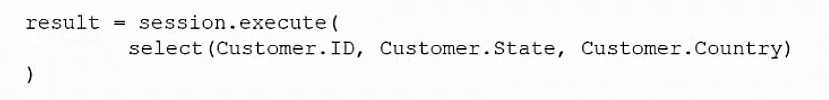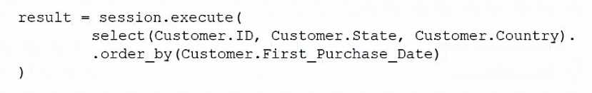 The ORM snippet that would return the ID, state, and country of all customers with the newest customers appearing first is option C. This snippet uses the select method to specify the columns to be returned, the order method to sort the results by ID in descending order, and the all method to fetch all the records. The other options either have syntax errors, use incorrect methods, or do not sort the results correctly.