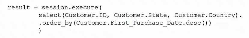Which of the following ORM snippets would return the ID, state, and country of all customers with the newest customers appearing first?