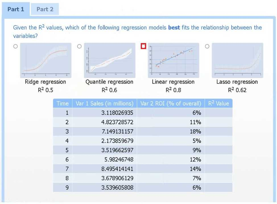 Of the four models, linear regression has the highest R² (0.8), indicating it explains the greatest proportion of variance in sales.