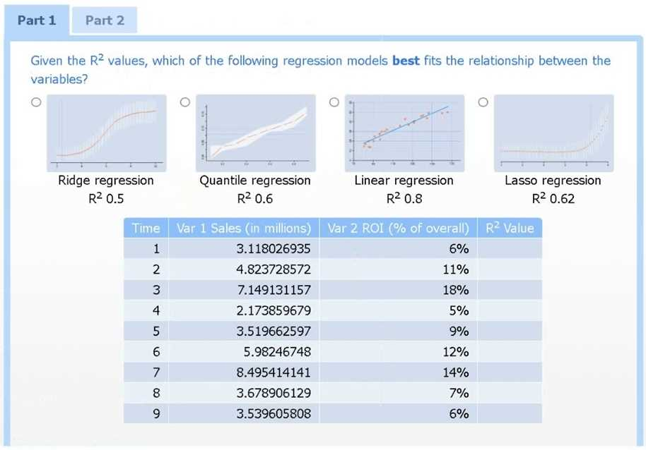 Use the information provided in the table to select the appropriate regression model.