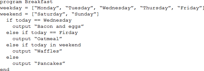 If the Breakfast program ran on Sunday, which of the following would be the output?