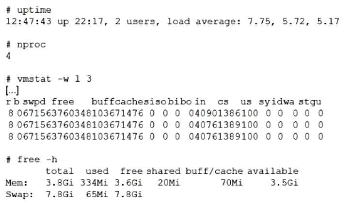 A Linux administrator receives reports that an application hosted in a system is not completing tasks in the allocated time. The administrator connects to the system and obtains the following details: