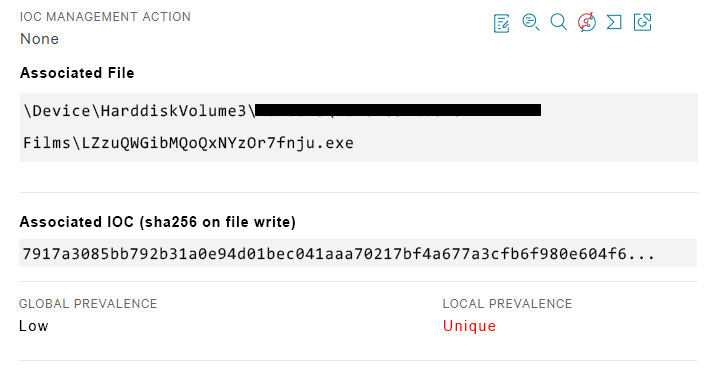 Falcon detected the above file attempting to execute. At initial glance, what indicators can we use to provide an initial analysis of the file?