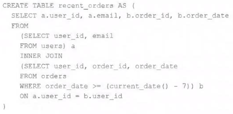 Both users and orders are Delta Lake tables. Which statement describes the results of querying recent_orders?