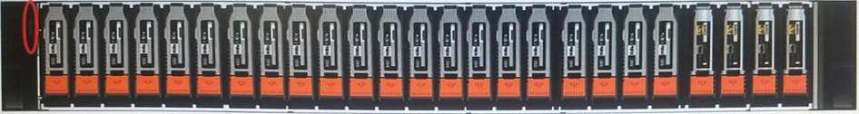 A Storage Administrator is troubleshooting a Dell EMC PowerStore T hardware issue. They observe that the base enclosure LED circled is blue.