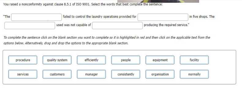 The quality system failed to control the laundry services provided for customers in five shops. The equipment used was not capable of consistently producing the required service.