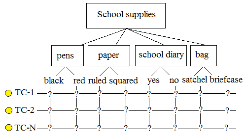 In order to test the purchase of school supplies, logical test cases must be created based on the Data Combination Test. It has been agreed to use an average depth test. This means that Pairwise Testing will be applied on all data.