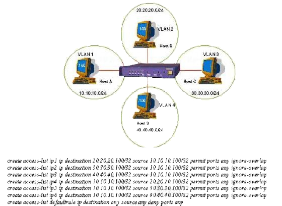 According to accompanying diagram and ACL configuration it is possible to telnet from host A to any of the switch IP addresses.