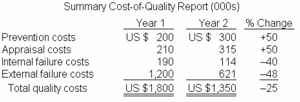 In Year 2, a manufacturing company instituted a total quality management (TQM) program producing the following report: