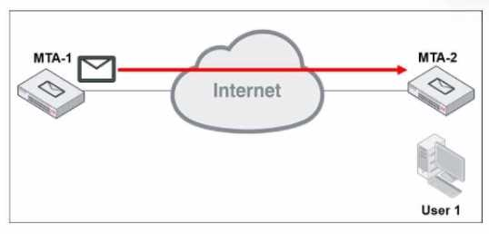 3. MTA-1 will use SMTP to deliver the email message to MTA-2.