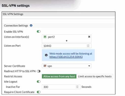 The SSL-VPN configuration hasRequire Client Certificateenabled.