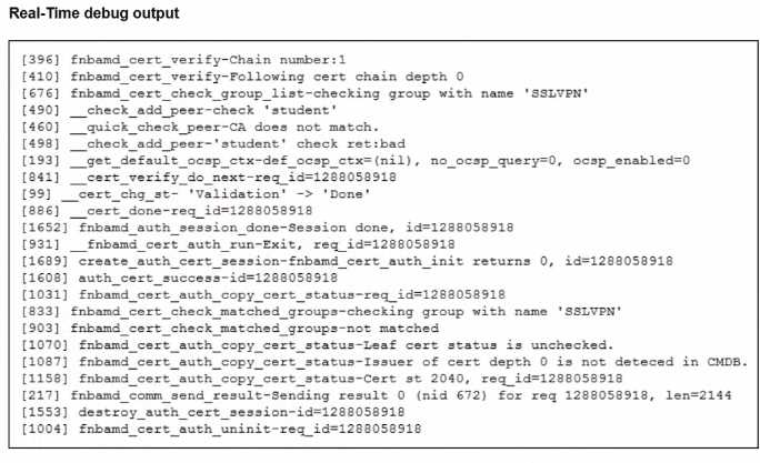 Which include debug output and SSL VPN configuration details.