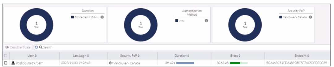 In the user connection monitor, the FortiSASE administrator notices the user name is showing random characters.