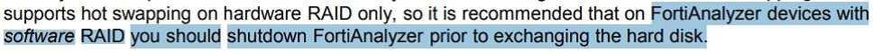 https://community.fortinet.com/t5/FortiAnalyzer/Technical-Note-How-to-swap-Hard-Disk-on-FortiAnalyzer/ta-p/194997?externalID=FD41397#:~:text=If%20a%20hard%20disk%20on,process%20known%20as%20hot%20swapping