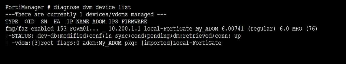 An administrator run the reload failure command: diagnose test deploymanager reload config <deviceid> on FortiManager.