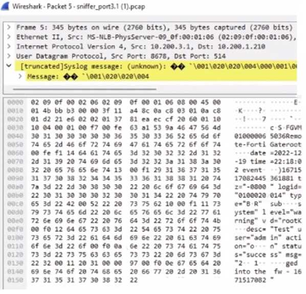 The exhibit shows a packet capture with a syslog message containing a log event from a FortiGate device. This log event includes several details such as the date, time, and event message. The corresponding image that matches this packet capture would be the one which shows that the FortiGate device has logs being received in real-time, as indicated by the highlighted section in the packet capture where it mentions "real-time". Therefore, Option A is the correct answer because it shows logs with "Real Time" status for the FortiGate-VM64 device, indicating that this FortiAnalyzer is currently receiving real-time logs from the device, matching the activity in the packet capture.