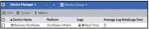 Based on the provided exhibits and the real-time logging information, correlated with the knowledge from the FortiAnalyzer 7.2 Administrator documentation regarding log reception and device management.