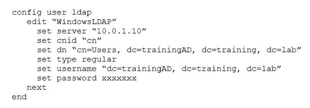 A FortiGate device has the following LDAP configuration: