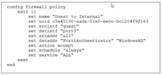 3. Apply a guest.portal user group in the firewall policy with the ID 11.