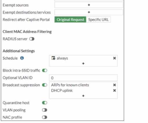 Examine the firewall policy configuration and SSID settings An administrator has configured a guest wireless network on FortiGate using the external captive portal The administrator has verified that the external captive portal URL is correct However wireless users are not able to see the captive portal login page Given the configuration shown in the exhibit and the SSID settings which configuration change should the administrator make to fix the problem?