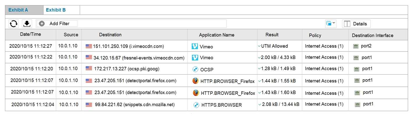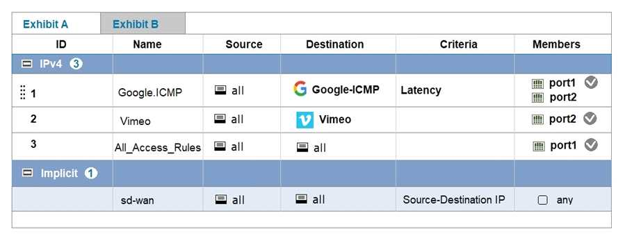 Exhibit A, which shows the SD-WAN performance SLA and exhibit B shows the health of the participating SD-WAN members.