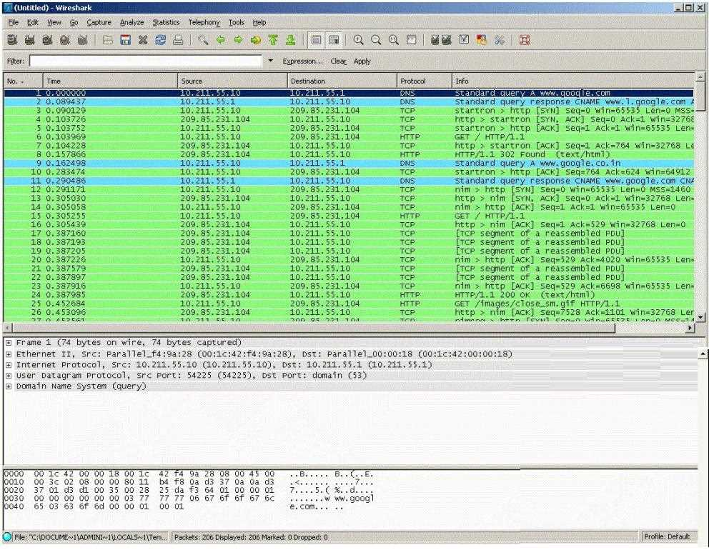 · SYN packet is sent to Google.