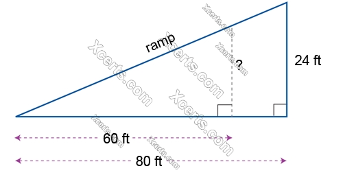 The diagram below shows a ramp that rises uniformly 24 feet over a distance of 80 feet.