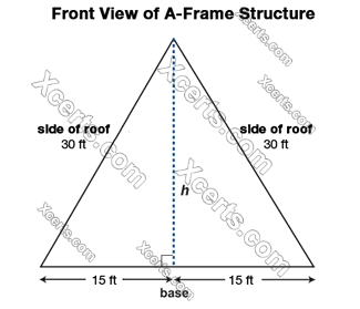 The base and sides of the roof of an A-frame structure are all 30 feet long. A front view of the structure is shown in the diagram below.