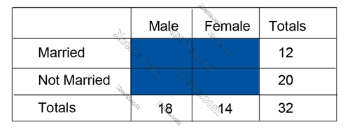 The table at the left shows the distribution of 32 students in a night-school class by gender and by marital status.