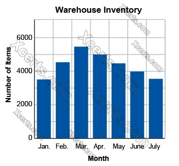 If the trend from March to July continues, approximately how many items will be in the warehouse in August?