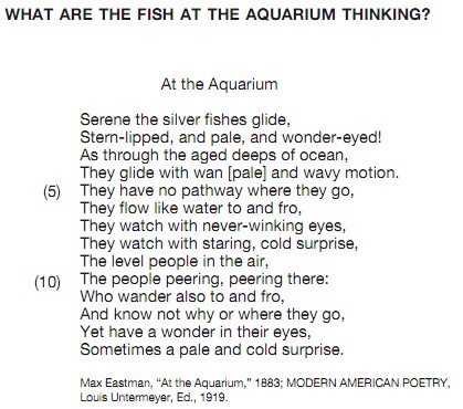 What feeling does the speaker attribute to the fish by calling them "wonder-eyed" (line 2)?