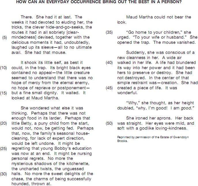 The second paragraph, lines 9–16, describes the mouse’s reaction to being in the trap.