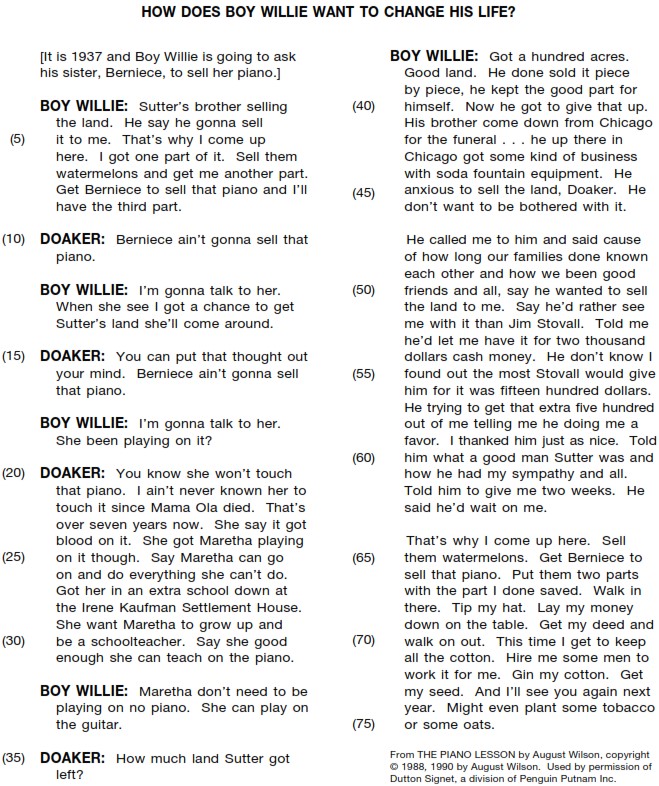 Later in the play, it is revealed that the piano has carvings on it of Boy Willie’s and