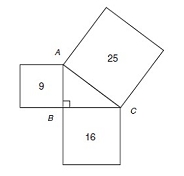 The length of one side of a square is equal to the square root of the area of the square. Since the area of the squares is 9, 16, and 25, the lengths of the sides of the squares are 3, 4, and 5, respectively. The triangle is formed by the sides of the three squares; therefore, the perimeter, or distance around the triangle, is 3 + 4 + 5