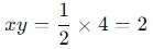 The possible values for x and y are x = 1/2 and y = 4. We now calculate the value of xy:
