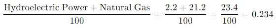 · Natural Gas and Nuclear Power: 21.2 + 6.5 = 27.7% Less than 50% · Natural Gas and Renewable Sources: 21.2 + 13.5 = 34.7% Less than 50%