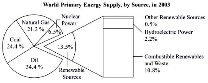 Based on the information given, which of the following pairs of energy sources accounted for more than one- half of the world primary energy supply? (Choose all that apply.)