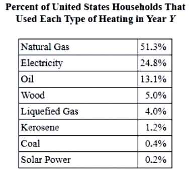 From the table, we know that 1.2% of U.S. households in year Y used kerosene as a type of heating.