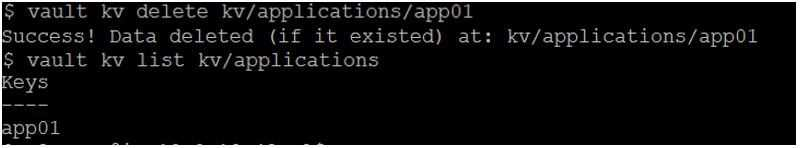 After issuing the command to delete a secret, you run a vault kv list command, but the path to the secret still seems to exist.