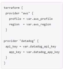 You ate creating a Terraform configuration which needs to make use of multiple providers, one for AWS and one for Datadog.