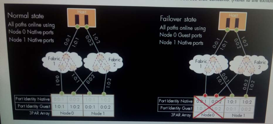 A company's Leas SAN Architect considers HP 3PAR StoreServ a Tier 2 solution due the requirement for node reboot during Inform Operating System upgrades. You present the HP 3PAR Persistence Port feature to the customer to address their concerns. (Refer to the exhibit.)