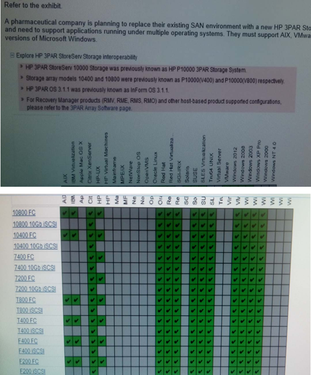 A pharmaceutical company is planning to replace their existing SAN environment with new HP 3PAR StoreServ array. They run a multi-vendor data center and need to support applications running under multiple operating systems....