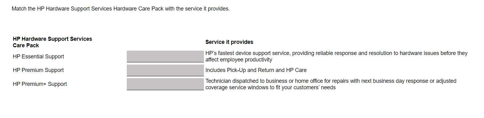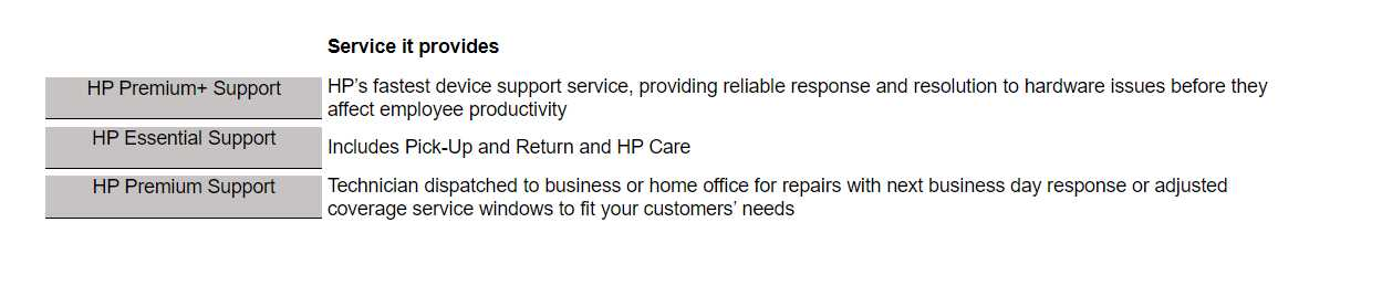Service it provides: HP's fastest device support service, providing reliable response and resolution to hardware issues before they affect employee productivity